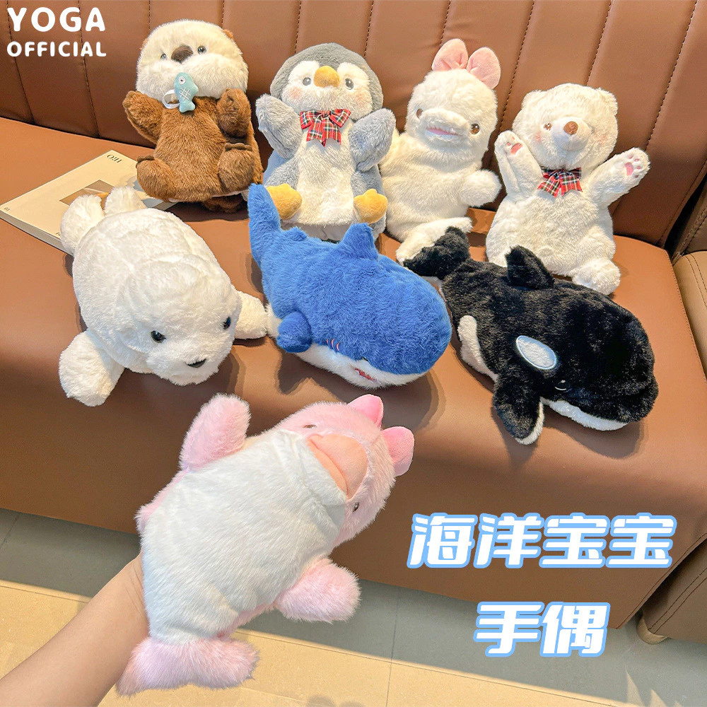 🔥 Đồ chơi nhồi bông động vật biển thật, chim cánh cụt, hải cẩu, cá mập, gấu bắc cực, con rối tay, đồ chơi chữa bệnh dễ thương đang giảm giá!