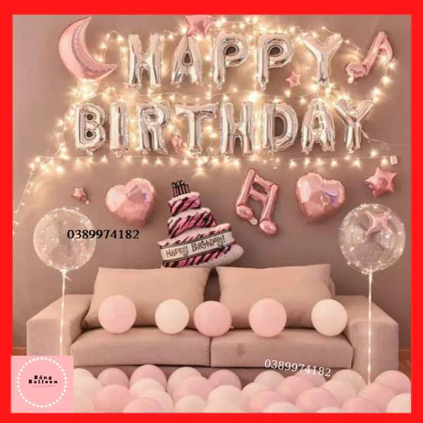 - Set bóng bay trang trí sinh nhật màu hồng: 1 set bóng bay trang trí sinh nhật màu hồng đẹp và chất lượng.