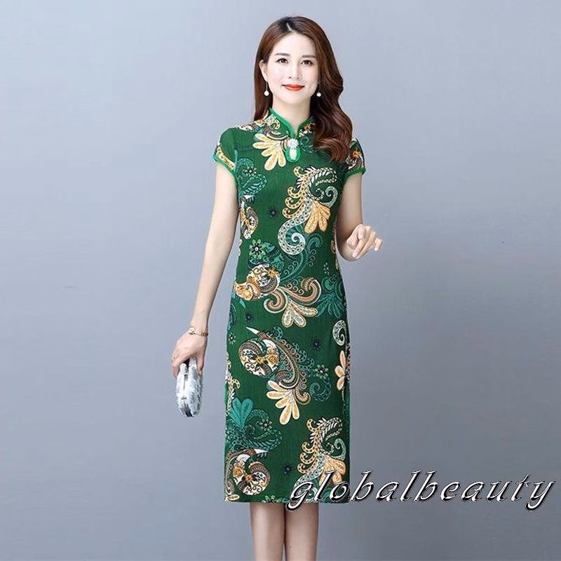 🔥 Đầm Sườn Xám bigsize Cách Tân Họa Tiết Vintage Trung Hoadài qua gối/sườn xám trung niên đang giảm giá!