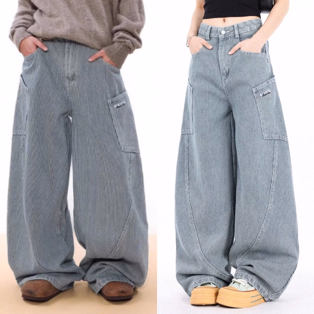 Khám phá Live GREA Quần Jean Nam Mỹ Retro Sọc Dọc Eo Co Giãn Chân Thẳng Quần Ống Rộng