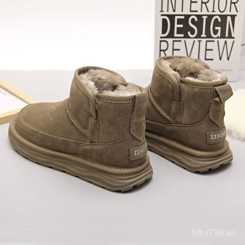 Giày Tuyết Nữ Lông Thú Tích Hợp 2025 Phong Cách Mới Mùa Đông Dày Da Bò Len Giày Bốt Ngắn Đông Bắc Chống Trơn Trượt Nhiệt Cotton Giày 6XXU: Một Lựa Chọn T tuyệt vời