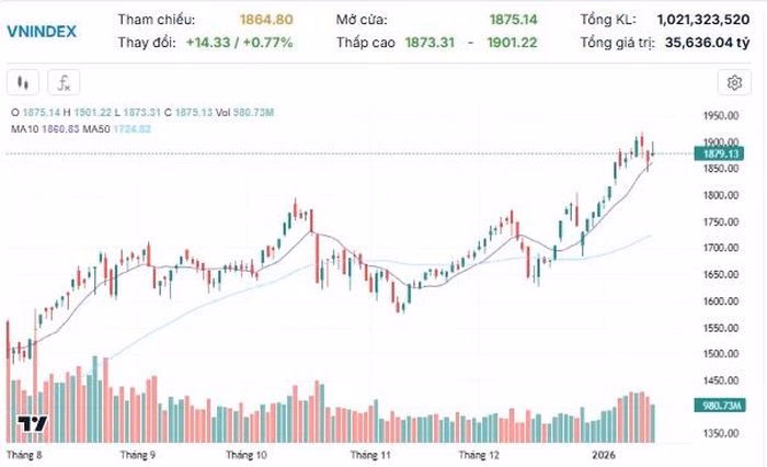 Thị trường chứng khoán Việt Nam tiếp tục ghi nhận đà tăng vào ngày 19/1, và Yuanta Việt Nam đề xuất nhà đầu tư nắm giữ 30‑50% danh mục cổ phiếu.